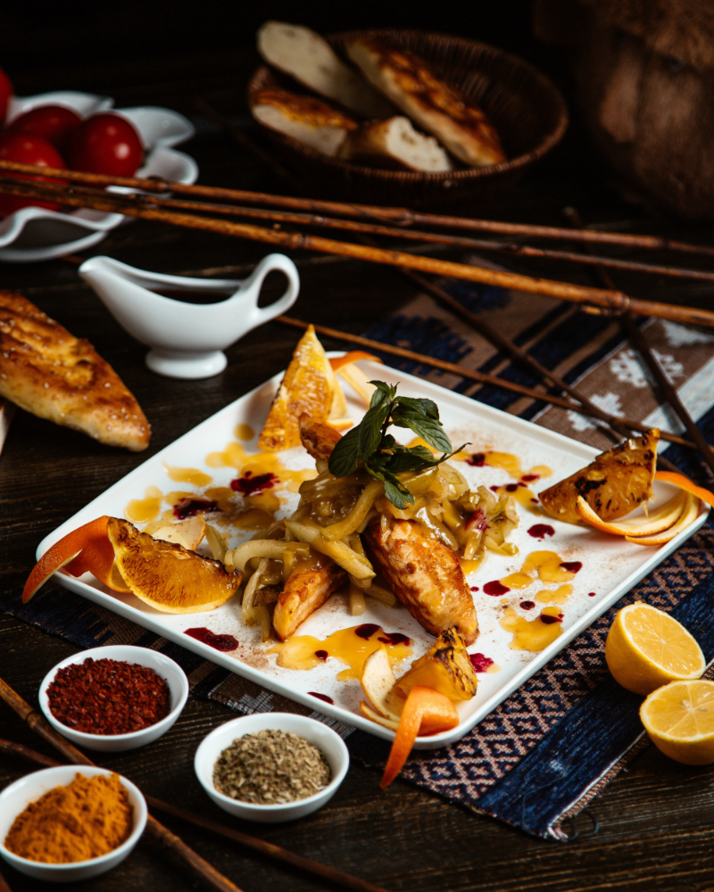 A stunning Mediterranean-style set featuring vibrant cobalt walls, ornate scalloped arches, and golden lanterns that create a cinematic oasis for any production.